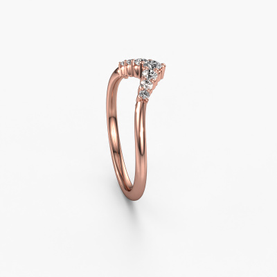 This Imani A stacking ring in 14 Carat rose gold is set with lab grown diamond. This rose gold stacked Imani A ring is the perfect addition to your ring collection! As the name suggests, it is a ring which can be combined on one finger with another ring. It gives you the opportunity to create your own style. A stacked ring usually represents a certain memory of someone special or a memorable moment. It is common to combine a stacked ring, representing an anniversary, with a wedding ring. But this graceful ring, combined with your other rings, also makes a classy fashion item. As soon as you finished designing your Imani A stacking ring with our online tool, our goldsmiths will start their creative process of making your ring. This will be done with passion and care, according ancient crafting. On top of that, our jewels are made of eco-friendly materials. Simply customize online with our online tool, if you want any changes made. If you want specific changes made to your Imani A stacking ring, that are unavailable in our online tool, please feel free to contact our expert designers.Because we design and deliver our own rings, we can offer you a ring at a price you won't find anywhere else. A ring is made to order, which helps prevent excess supplies, so we can make you a great price offer. We understand it feels risky, buying your ring online, but we will gladly assist in the designing process, taking your budget into consideration.To make it easier for you, we offer a 30 day return policy. Check our terms and conditions.