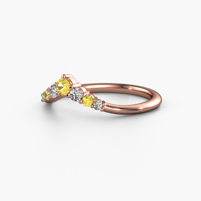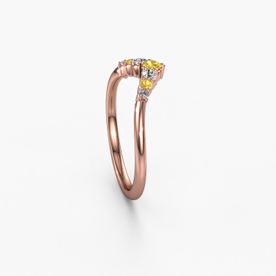This Imani A stacking ring in 14 Carat rose gold is set with yellow sapphire. This rose gold stacked Imani A ring is the perfect addition to your ring collection! As the name suggests, it is a ring which can be combined on one finger with another ring. It gives you the opportunity to create your own style. A stacked ring usually represents a certain memory of someone special or a memorable moment. It is common to combine a stacked ring, representing an anniversary, with a wedding ring. But this graceful ring, combined with your other rings, also makes a classy fashion item. As soon as you finished designing your Imani A stacking ring with our online tool, our goldsmiths will start their creative process of making your ring. This will be done with passion and care, according ancient crafting. On top of that, our jewels are made of eco-friendly materials. Simply customize online with our online tool, if you want any changes made. If you want specific changes made to your Imani A stacking ring, that are unavailable in our online tool, please feel free to contact our expert designers.Because we design and deliver our own rings, we can offer you a ring at a price you won't find anywhere else. A ring is made to order, which helps prevent excess supplies, so we can make you a great price offer. We understand it feels risky, buying your ring online, but we will gladly assist in the designing process, taking your budget into consideration.To make it easier for you, we offer a 30 day return policy. Check our terms and conditions.