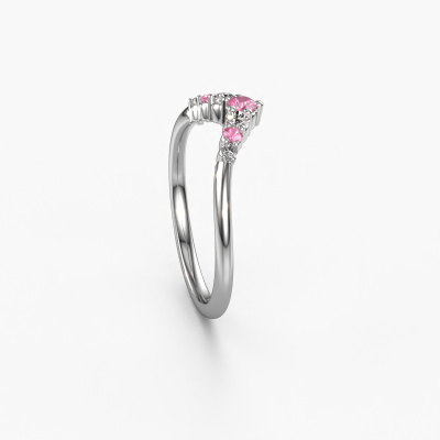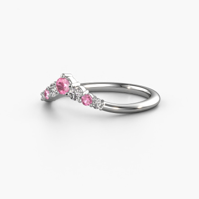 This Imani A stacking ring in 14 Carat white gold is set with pink sapphire. This white gold stacked Imani A ring is the perfect addition to your ring collection! As the name suggests, it is a ring which can be combined on one finger with another ring. It gives you the opportunity to create your own style. A stacked ring usually represents a certain memory of someone special or a memorable moment. It is common to combine a stacked ring, representing an anniversary, with a wedding ring. But this graceful ring, combined with your other rings, also makes a classy fashion item. As soon as you finished designing your Imani A stacking ring with our online tool, our goldsmiths will start their creative process of making your ring. This will be done with passion and care, according ancient crafting. On top of that, our jewels are made of eco-friendly materials. Simply customize online with our online tool, if you want any changes made. If you want specific changes made to your Imani A stacking ring, that are unavailable in our online tool, please feel free to contact our expert designers.Because we design and deliver our own rings, we can offer you a ring at a price you won't find anywhere else. A ring is made to order, which helps prevent excess supplies, so we can make you a great price offer. We understand it feels risky, buying your ring online, but we will gladly assist in the designing process, taking your budget into consideration.To make it easier for you, we offer a 30 day return policy. Check our terms and conditions.