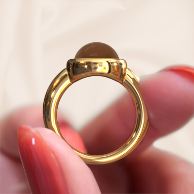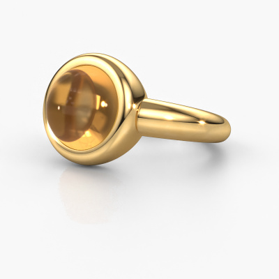 In this photo the gold Jenae ring is set with a cabochon citrin. Cabochon means a citrin is shaped first, not faceted, into a specific shape, such as a drop, heart or round cabochon. Subsequently, it is polished until the gemstone has a orb shaped surface. A cabochon gemstone is a stunning, classy eye-catcher that matches perfectly with a contemporary as well as a vintage style. Our expert goldsmiths shape the beautiful ring to perfection which makes it unique. The cabochon citrin is set so its unique qualities are strengthened. A customized trendy ring is the perfect gift! New exquisite designs are added daily by our team of passionate goldsmiths. And each design can be customized. Simply customize the precious metals and the colour of gemstones which will be used, for example. This makes your design of the trendy Jenae ring truly unique!By using a combination of the latest modern techniques, combined with ancient crafting, we can make all our rings in our own studio. Each jewel is made to order. This is advantageous because we can offer you a price you won't find anywhere else.To make it easier for you, we offer a 30 day return policy. Check our terms and conditions.