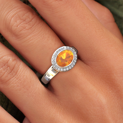 Are you looking for a birthstones ring with an eye-catching single gemstone? How do you like this Salena ring? This platinum Salena ring is set with a beautiful 8x6 mm oval citrin. The citrin is carefully selected by our citrin suppliers. Subsequently, these birthstones are then set by our goldsmith according to ancient tradition. The ring will then be polished to perfection creating a unique ring with a stunning citrin. Created especially for you. The best part of this birthstones ring is that you can customize it to your own liking. Your style, your choice, your ring. On top of that, your design platinum ring will be made by hand with eco-friendly materials! Please feel free to easily customize the ring, using our online tool.By using a combination of the latest modern techniques, combined with ancient crafting, we can make all our rings in our own studio. Each jewel is made to order. This is advantageous because we can offer you a price you won't find anywhere else.To make it easier for you, we offer a 30 day return policy. Check our terms and conditions.