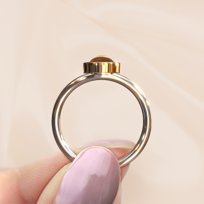 In this photo the white gold Lieselotte ring is set with a cabochon citrin. Cabochon means a citrin is shaped first, not faceted, into a specific shape, such as a drop, heart or oval cabochon. Subsequently, it is polished until the gemstone has a orb shaped surface. A cabochon gemstone is a stunning, classy eye-catcher that matches perfectly with a contemporary as well as a vintage style. Our expert goldsmiths shape the charming ring to perfection which makes it unique. The cabochon citrin is set so its unique qualities are strengthened. How do you like this fantasy white gold ring? Simply customize this Lieselotte ring, using our online tool. Subsequently, your personal charming Lieselotte ring will be made by hand by our goldsmiths. Precious metals and gemstones can be customized to your liking. Do you have specific preferences which are unavailable in our online tool? Please feel free to contact us. We will customize your personal fantasy ring to your liking.After receiving your order, our goldsmiths will passionately start the creative process of making your ring in our own studio. Because we don't have a big stockpile, these costs will not be passed on to you. Our pricing is proof of that! We offer top quality jewels at lowest price, guaranteed.To make it easier for you, we offer a 30 day return policy. Check our terms and conditions.