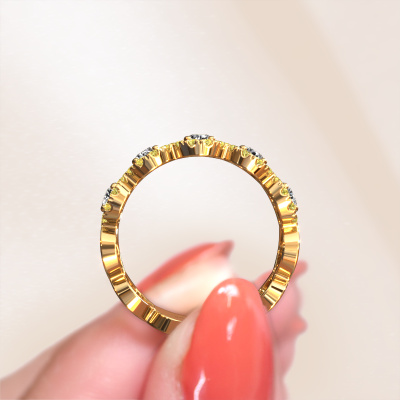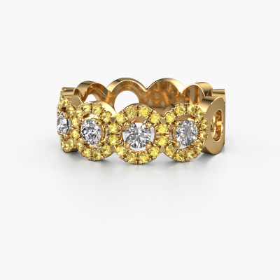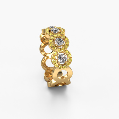 This Tanisha ring in 14 Carat gold is set with yellow sapphire. This gold stacked Tanisha ring is the perfect addition to your ring collection! As the name suggests, it is a ring which can be combined on one finger with another ring. It gives you the opportunity to create your own style. A stacked ring usually represents a certain memory of someone special or a memorable moment. It is common to combine a stacked ring, representing an anniversary, with a wedding ring. But this graceful ring, combined with your other rings, also makes a classy fashion item. The best part of this graceful ring is that you can customize it to your own liking. Your style, your choice, your ring. On top of that, your classic gold ring will be made by hand with eco-friendly materials! Please feel free to easily customize the ring, using our online tool.By using a combination of the latest modern techniques, combined with ancient crafting, we can make all our rings in our own studio. Each jewel is made to order. This is advantageous because we can offer you a price you won't find anywhere else.To make it easier for you, we offer a 30 day return policy. Check our terms and conditions.