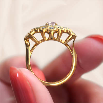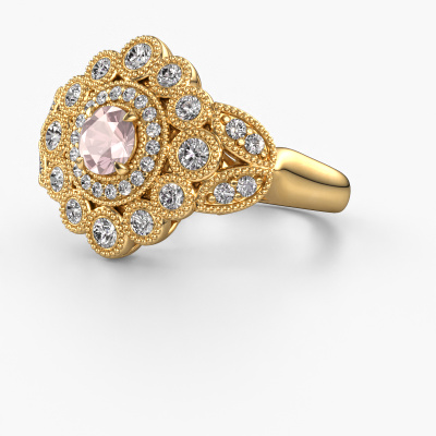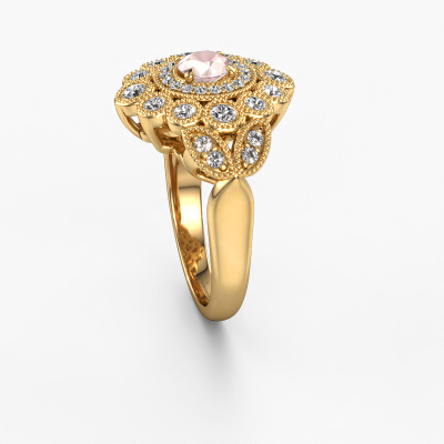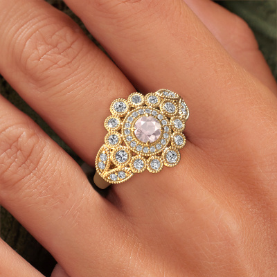 Do you have a vintage fetish? Then this gold Elia ring suits you perfectly. It's a contemporary design, based on vintage designs. A slightly romantic, extraordinary design! Even more when you customize to your liking. This cluster ring is set with exquisite morganite champagne. As you can see, you can simply choose a gemstone that matches your style. Each gemstone is carefully selected by our merchants whom are spread throughout the world. Nothing but the best gems for our expert goldsmith! After all, it is his crowning glory!Our goldsmiths passionately create your customized ring to your liking with the utmost care. The gold ring, as shown here, can be customized using our online tool. Feel free to ask our jewel designers for assistance if you want changes made which are unavailable in our online tool. We are happy to answer your questions.Because we design and deliver our own rings, we can offer you a ring at a price you won't find anywhere else. A ring is made to order, which helps prevent excess supplies, so we can make you a great price offer. We understand it feels risky, buying your ring online, but we will gladly assist in the designing process, taking your budget into consideration.To make it easier for you, we offer a 30 day return policy. Check our terms and conditions.