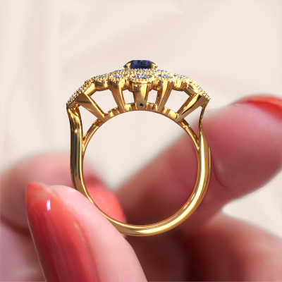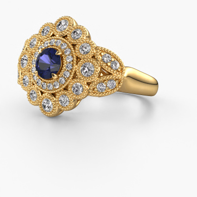 Do you have a vintage fetish? Then this gold Elia ring suits you perfectly. It's a contemporary design, based on vintage designs. A slightly romantic, extraordinary design! Even more when you customize to your liking. This cluster ring is set with exquisite sapphire. As you can see, you can simply choose a gemstone that matches your style. Each gemstone is carefully selected by our merchants whom are spread throughout the world. Nothing but the best gems for our expert goldsmith! After all, it is his crowning glory!Our goldsmiths passionately create your customized ring to your liking with the utmost care. The gold ring, as shown here, can be customized using our online tool. Feel free to ask our jewel designers for assistance if you want changes made which are unavailable in our online tool. We are happy to answer your questions.Because we design and deliver our own rings, we can offer you a ring at a price you won't find anywhere else. A ring is made to order, which helps prevent excess supplies, so we can make you a great price offer. We understand it feels risky, buying your ring online, but we will gladly assist in the designing process, taking your budget into consideration.To make it easier for you, we offer a 30 day return policy. Check our terms and conditions.