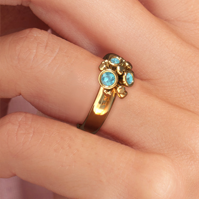 How would you describe your own style? Are you looking for something uniquely different? This flower gold Pameila ring is astonishing! Simply customize to your or her own liking. This ring is set with blue topaz. These blue topaz have been carefully selected because your ring must be adorned with nothing but the most beautiful gemstone. Wouldn't you agree? Our expert goldsmith will create your ring in our own crafting studios, where the blue topaz will be set with care. The ring will then be polished to perfection to give it that extra sparkle. It's a perfect ring for a woman of excellent taste!How do you like this contemporary gold ring? Simply customize this Pameila ring, using our online tool. Subsequently, your personal flower Pameila ring will be made by hand by our goldsmiths. Precious metals and gemstones can be customized to your liking. Do you have specific preferences which are unavailable in our online tool? Please feel free to contact us. We will customize your personal contemporary ring to your liking.Are you on a budget? Please feel free to contact us, so we can go discuss your options. We offer our rings at guaranteed best price, because we make them to order. You won't find such a price anywhere else!To make it easier for you, we offer a 30 day return policy. Check our terms and conditions.