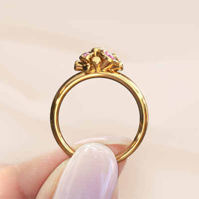 How would you describe your own style? Are you looking for something uniquely different? This flower gold Pameila ring is astonishing! Simply customize to your or her own liking. This ring is set with pink sapphire. These pink sapphire have been carefully selected because your ring must be adorned with nothing but the most beautiful gemstone. Wouldn't you agree? Our expert goldsmith will create your ring in our own crafting studios, where the pink sapphire will be set with care. The ring will then be polished to perfection to give it that extra sparkle. It's a perfect ring for a woman of excellent taste!How do you like this contemporary gold ring? Simply customize this Pameila ring, using our online tool. Subsequently, your personal flower Pameila ring will be made by hand by our goldsmiths. Precious metals and gemstones can be customized to your liking. Do you have specific preferences which are unavailable in our online tool? Please feel free to contact us. We will customize your personal contemporary ring to your liking.Are you on a budget? Please feel free to contact us, so we can go discuss your options. We offer our rings at guaranteed best price, because we make them to order. You won't find such a price anywhere else!To make it easier for you, we offer a 30 day return policy. Check our terms and conditions.