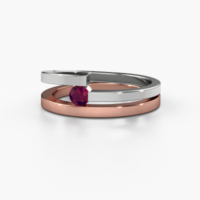 This ring called Sandy is made of 14 Carat rose gold and is set with rhodolite. Are you in the market for a unique rose gold ring with a modern twist? Then this ring might suit you. Simply customize to your or her liking. It suits the contemporary modern woman. This contemporary ring is set with beautiful rhodolite. This has been carefully selected. Because your ring must be adorned with nothing but the most stunning gemstone. Our expert goldsmith will create your ring in our own studio, where the rhodolite will be set with great care. The ring will then be polished to perfection to create a stunning ring. Are you on a budget? Please feel free to contact us, so we can go discuss your options. We offer our rings at guaranteed best price, because we make them to order. You won't find such a price anywhere else!Our talented designers add new designs to our online collection daily. Together they create a diverse collection of the finest jewellery. If you prefer to make a ring according your own design, please feel free to request a quote. We will make you an amazing offer, based on quality and price.To make it easier for you, we offer a 30 day return policy. Check our terms and conditions.
