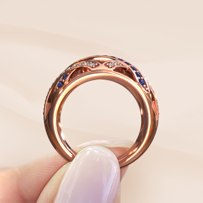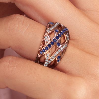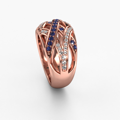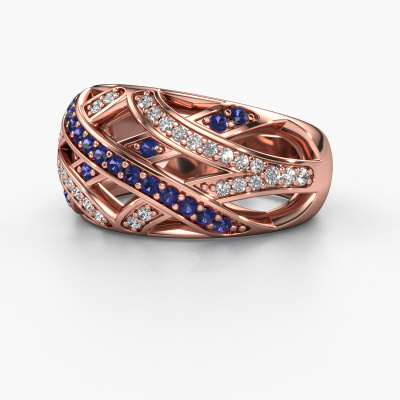 This ring called Yinthe is made of 14 Carat rose gold and is set with sapphire. Are you in the market for a unique rose gold ring with a modern twist? Then this ring might suit you. Simply customize to your or her liking. It suits the contemporary modern woman. This contemporary ring is set with beautiful sapphire. This has been carefully selected. Because your ring must be adorned with nothing but the most stunning gemstone. Our expert goldsmith will create your ring in our own studio, where the sapphire will be set with great care. The ring will then be polished to perfection to create a stunning ring. By using our modern techniques, we can design and customize the finest quality jewels with the utmost care for you. Our rings are always priced 30 percent lower than other jewellers. We make rings to order, so we don't have to maintain a large stock. If you have a certain budget, we are more than happy to advice you accordingly.Our talented designers add new designs to our online collection daily. Together they create a diverse collection of the finest jewellery. If you prefer to make a ring according your own design, please feel free to request a quote. We will make you an amazing offer, based on quality and price.To make it easier for you, we offer a 30 day return policy. Check our terms and conditions.
