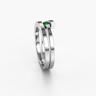 This ring called Sandy is made of 14 Carat white gold and is set with emerald. Are you in the market for a unique white gold ring with a modern twist? Then this ring might suit you. Simply customize to your or her liking. It suits the contemporary modern woman. This contemporary ring is set with beautiful emerald. This has been carefully selected. Because your ring must be adorned with nothing but the most stunning gemstone. Our expert goldsmith will create your ring in our own studio, where the emerald will be set with great care. The ring will then be polished to perfection to create a stunning ring. Are you on a budget? Please feel free to contact us, so we can go discuss your options. We offer our rings at guaranteed best price, because we make them to order. You won't find such a price anywhere else!Our talented designers add new designs to our online collection daily. Together they create a diverse collection of the finest jewellery. If you prefer to make a ring according your own design, please feel free to request a quote. We will make you an amazing offer, based on quality and price.To make it easier for you, we offer a 30 day return policy. Check our terms and conditions.