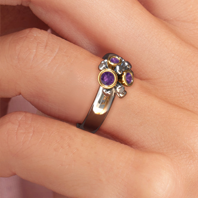 How would you describe your own style? Are you looking for something uniquely different? This flower white gold Pameila ring is astonishing! Simply customize to your or her own liking. This ring is set with amethyst. These amethysten have been carefully selected because your ring must be adorned with nothing but the most beautiful gemstone. Wouldn't you agree? Our expert goldsmith will create your ring in our own crafting studios, where the amethyst will be set with care. The ring will then be polished to perfection to give it that extra sparkle. It's a perfect ring for a woman of excellent taste!How do you like this contemporary white gold ring? Simply customize this Pameila ring, using our online tool. Subsequently, your personal flower Pameila ring will be made by hand by our goldsmiths. Precious metals and gemstones can be customized to your liking. Do you have specific preferences which are unavailable in our online tool? Please feel free to contact us. We will customize your personal contemporary ring to your liking.Are you on a budget? Please feel free to contact us, so we can go discuss your options. We offer our rings at guaranteed best price, because we make them to order. You won't find such a price anywhere else!To make it easier for you, we offer a 30 day return policy. Check our terms and conditions.