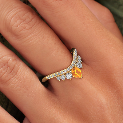 This Crown B stackable ring in 14 Carat gold is set with citrin. This gold stacked Crown B ring is the perfect addition to your ring collection! As the name suggests, it is a ring which can be combined on one finger with another ring. It gives you the opportunity to create your own style. A stacked ring usually represents a certain memory of someone special or a memorable moment. It is common to combine a stacked ring, representing an anniversary, with a wedding ring. But this daring ring, combined with your other rings, also makes a classy fashion item. As soon as you finished designing your Crown B stackable ring with our online tool, our goldsmiths will start their creative process of making your ring. This will be done with passion and care, according ancient crafting. On top of that, our jewels are made of eco-friendly materials. Simply customize online with our online tool, if you want any changes made. If you want specific changes made to your Crown B stackable ring, that are unavailable in our online tool, please feel free to contact our expert designers.By using our modern techniques, we can design and customize the finest quality jewels with the utmost care for you. Our rings are always priced 30 percent lower than other jewellers. We make rings to order, so we don't have to maintain a large stock. If you have a certain budget, we are more than happy to advice you accordingly.To make it easier for you, we offer a 30 day return policy. Check our terms and conditions.