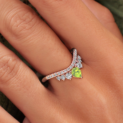 This Crown B stackable ring in 14 Carat rose gold is set with peridot. This rose gold stacked Crown B ring is the perfect addition to your ring collection! As the name suggests, it is a ring which can be combined on one finger with another ring. It gives you the opportunity to create your own style. A stacked ring usually represents a certain memory of someone special or a memorable moment. It is common to combine a stacked ring, representing an anniversary, with a wedding ring. But this daring ring, combined with your other rings, also makes a classy fashion item. As soon as you finished designing your Crown B stackable ring with our online tool, our goldsmiths will start their creative process of making your ring. This will be done with passion and care, according ancient crafting. On top of that, our jewels are made of eco-friendly materials. Simply customize online with our online tool, if you want any changes made. If you want specific changes made to your Crown B stackable ring, that are unavailable in our online tool, please feel free to contact our expert designers.By using our modern techniques, we can design and customize the finest quality jewels with the utmost care for you. Our rings are always priced 30 percent lower than other jewellers. We make rings to order, so we don't have to maintain a large stock. If you have a certain budget, we are more than happy to advice you accordingly.To make it easier for you, we offer a 30 day return policy. Check our terms and conditions.