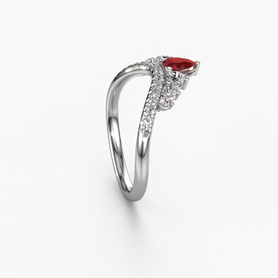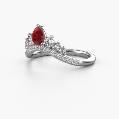 This Crown B stackable ring in 14 Carat white gold is set with ruby. This white gold stacked Crown B ring is the perfect addition to your ring collection! As the name suggests, it is a ring which can be combined on one finger with another ring. It gives you the opportunity to create your own style. A stacked ring usually represents a certain memory of someone special or a memorable moment. It is common to combine a stacked ring, representing an anniversary, with a wedding ring. But this daring ring, combined with your other rings, also makes a classy fashion item. As soon as you finished designing your Crown B stackable ring with our online tool, our goldsmiths will start their creative process of making your ring. This will be done with passion and care, according ancient crafting. On top of that, our jewels are made of eco-friendly materials. Simply customize online with our online tool, if you want any changes made. If you want specific changes made to your Crown B stackable ring, that are unavailable in our online tool, please feel free to contact our expert designers.By using our modern techniques, we can design and customize the finest quality jewels with the utmost care for you. Our rings are always priced 30 percent lower than other jewellers. We make rings to order, so we don't have to maintain a large stock. If you have a certain budget, we are more than happy to advice you accordingly.To make it easier for you, we offer a 30 day return policy. Check our terms and conditions.