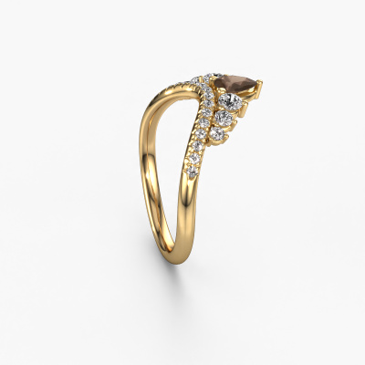This Crown B stackable ring in 14 Carat gold is set with smokey quartz. This gold stacked Crown B ring is the perfect addition to your ring collection! As the name suggests, it is a ring which can be combined on one finger with another ring. It gives you the opportunity to create your own style. A stacked ring usually represents a certain memory of someone special or a memorable moment. It is common to combine a stacked ring, representing an anniversary, with a wedding ring. But this daring ring, combined with your other rings, also makes a classy fashion item. As soon as you finished designing your Crown B stackable ring with our online tool, our goldsmiths will start their creative process of making your ring. This will be done with passion and care, according ancient crafting. On top of that, our jewels are made of eco-friendly materials. Simply customize online with our online tool, if you want any changes made. If you want specific changes made to your Crown B stackable ring, that are unavailable in our online tool, please feel free to contact our expert designers.By using our modern techniques, we can design and customize the finest quality jewels with the utmost care for you. Our rings are always priced 30 percent lower than other jewellers. We make rings to order, so we don't have to maintain a large stock. If you have a certain budget, we are more than happy to advice you accordingly.To make it easier for you, we offer a 30 day return policy. Check our terms and conditions.