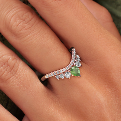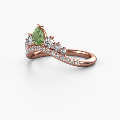 This Crown B stackable ring in 14 Carat rose gold is set with tourmaline green. This rose gold stacked Crown B ring is the perfect addition to your ring collection! As the name suggests, it is a ring which can be combined on one finger with another ring. It gives you the opportunity to create your own style. A stacked ring usually represents a certain memory of someone special or a memorable moment. It is common to combine a stacked ring, representing an anniversary, with a wedding ring. But this daring ring, combined with your other rings, also makes a classy fashion item. As soon as you finished designing your Crown B stackable ring with our online tool, our goldsmiths will start their creative process of making your ring. This will be done with passion and care, according ancient crafting. On top of that, our jewels are made of eco-friendly materials. Simply customize online with our online tool, if you want any changes made. If you want specific changes made to your Crown B stackable ring, that are unavailable in our online tool, please feel free to contact our expert designers.By using our modern techniques, we can design and customize the finest quality jewels with the utmost care for you. Our rings are always priced 30 percent lower than other jewellers. We make rings to order, so we don't have to maintain a large stock. If you have a certain budget, we are more than happy to advice you accordingly.To make it easier for you, we offer a 30 day return policy. Check our terms and conditions.