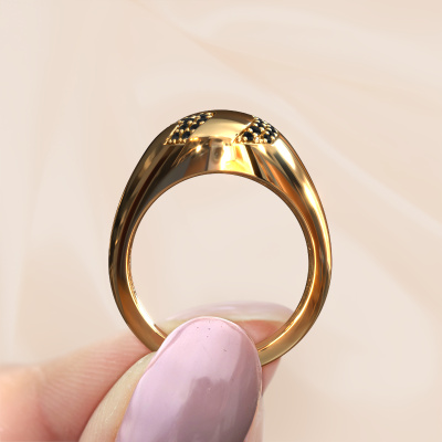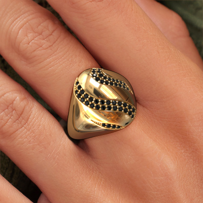 How would you describe your own style? Are you looking for something uniquely different? This pavé set gold Vilma ring is astonishing! Simply customize to your or her own liking. This ring is set with black diamond. These black diamonds have been carefully selected because your ring must be adorned with nothing but the most beautiful gemstone. Wouldn't you agree? Our expert goldsmith will create your ring in our own crafting studios, where the black diamond will be set with care. The ring will then be polished to perfection to give it that extra sparkle. It's a perfect ring for a woman of excellent taste!How do you like this design gold ring? Simply customize this Vilma ring, using our online tool. Subsequently, your personal pavé set Vilma ring will be made by hand by our goldsmiths. Precious metals and gemstones can be customized to your liking. Do you have specific preferences which are unavailable in our online tool? Please feel free to contact us. We will customize your personal design ring to your liking.After receiving your order, our goldsmiths will passionately start the creative process of making your ring in our own studio. Because we don't have a big stockpile, these costs will not be passed on to you. Our pricing is proof of that! We offer top quality jewels at lowest price, guaranteed.To make it easier for you, we offer a 30 day return policy. Check our terms and conditions.