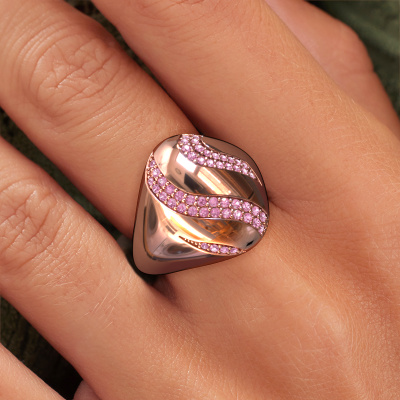 How would you describe your own style? Are you looking for something uniquely different? This pavé set rose gold Vilma ring is astonishing! Simply customize to your or her own liking. This ring is set with pink sapphire. These pink sapphire have been carefully selected because your ring must be adorned with nothing but the most beautiful gemstone. Wouldn't you agree? Our expert goldsmith will create your ring in our own crafting studios, where the pink sapphire will be set with care. The ring will then be polished to perfection to give it that extra sparkle. It's a perfect ring for a woman of excellent taste!How do you like this design rose gold ring? Simply customize this Vilma ring, using our online tool. Subsequently, your personal pavé set Vilma ring will be made by hand by our goldsmiths. Precious metals and gemstones can be customized to your liking. Do you have specific preferences which are unavailable in our online tool? Please feel free to contact us. We will customize your personal design ring to your liking.After receiving your order, our goldsmiths will passionately start the creative process of making your ring in our own studio. Because we don't have a big stockpile, these costs will not be passed on to you. Our pricing is proof of that! We offer top quality jewels at lowest price, guaranteed.To make it easier for you, we offer a 30 day return policy. Check our terms and conditions.