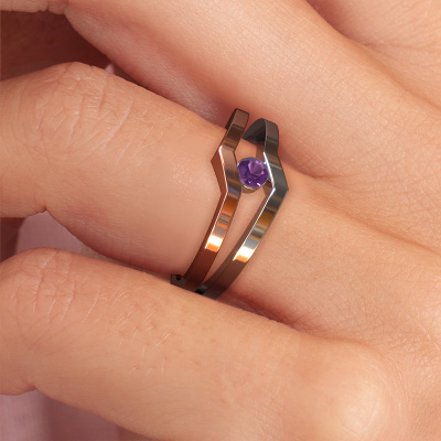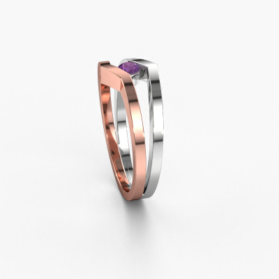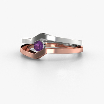 This ring called Elize is made of 14 Carat rose gold and is set with amethyst. Are you in the market for a unique rose gold ring with a modern twist? Then this ring might suit you. Simply customize to your or her liking. It suits the contemporary modern woman. This edgy ring is set with beautiful amethyst. This has been carefully selected. Because your ring must be adorned with nothing but the most stunning gemstone. Our expert goldsmith will create your ring in our own studio, where the amethyst will be set with great care. The ring will then be polished to perfection to create a stunning ring. Are you on a budget? Please feel free to contact us, so we can go discuss your options. We offer our rings at guaranteed best price, because we make them to order. You won't find such a price anywhere else!New jewellery designs are added to our online collection daily. Our team of passionate designers strive to create extraordinary and diverse designs. Have you seen a ring you like? Please feel free to contact us. Based on a good price/ quality ratio, we will make you an offer you can't refuse!To make it easier for you, we offer a 30 day return policy. Check our terms and conditions.