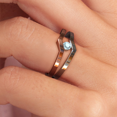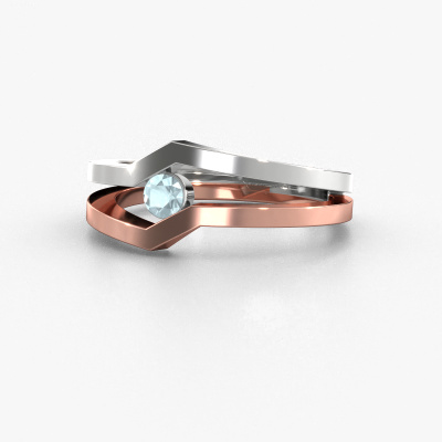 This ring called Elize is made of 14 Carat rose gold and is set with aquamarine. Are you in the market for a unique rose gold ring with a modern twist? Then this ring might suit you. Simply customize to your or her liking. It suits the contemporary modern woman. This edgy ring is set with beautiful aquamarine. This has been carefully selected. Because your ring must be adorned with nothing but the most stunning gemstone. Our expert goldsmith will create your ring in our own studio, where the aquamarine will be set with great care. The ring will then be polished to perfection to create a stunning ring. Are you on a budget? Please feel free to contact us, so we can go discuss your options. We offer our rings at guaranteed best price, because we make them to order. You won't find such a price anywhere else!New jewellery designs are added to our online collection daily. Our team of passionate designers strive to create extraordinary and diverse designs. Have you seen a ring you like? Please feel free to contact us. Based on a good price/ quality ratio, we will make you an offer you can't refuse!To make it easier for you, we offer a 30 day return policy. Check our terms and conditions.