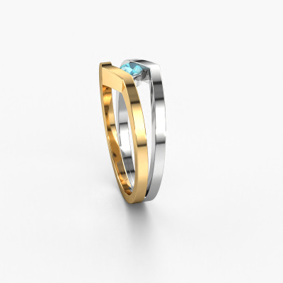 This ring called Elize is made of 14 Carat gold and is set with blue topaz. Are you in the market for a unique gold ring with a modern twist? Then this ring might suit you. Simply customize to your or her liking. It suits the contemporary modern woman. This edgy ring is set with beautiful blue topaz. This has been carefully selected. Because your ring must be adorned with nothing but the most stunning gemstone. Our expert goldsmith will create your ring in our own studio, where the blue topaz will be set with great care. The ring will then be polished to perfection to create a stunning ring. Are you on a budget? Please feel free to contact us, so we can go discuss your options. We offer our rings at guaranteed best price, because we make them to order. You won't find such a price anywhere else!New jewellery designs are added to our online collection daily. Our team of passionate designers strive to create extraordinary and diverse designs. Have you seen a ring you like? Please feel free to contact us. Based on a good price/ quality ratio, we will make you an offer you can't refuse!To make it easier for you, we offer a 30 day return policy. Check our terms and conditions.
