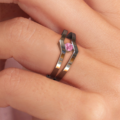 This ring called Elize is made of 14 Carat white gold and is set with pink sapphire. Are you in the market for a unique white gold ring with a modern twist? Then this ring might suit you. Simply customize to your or her liking. It suits the contemporary modern woman. This edgy ring is set with beautiful pink sapphire. This has been carefully selected. Because your ring must be adorned with nothing but the most stunning gemstone. Our expert goldsmith will create your ring in our own studio, where the pink sapphire will be set with great care. The ring will then be polished to perfection to create a stunning ring. Are you on a budget? Please feel free to contact us, so we can go discuss your options. We offer our rings at guaranteed best price, because we make them to order. You won't find such a price anywhere else!New jewellery designs are added to our online collection daily. Our team of passionate designers strive to create extraordinary and diverse designs. Have you seen a ring you like? Please feel free to contact us. Based on a good price/ quality ratio, we will make you an offer you can't refuse!To make it easier for you, we offer a 30 day return policy. Check our terms and conditions.