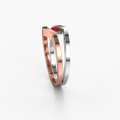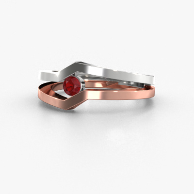 This ring called Elize is made of 14 Carat rose gold and is set with ruby. Are you in the market for a unique rose gold ring with a modern twist? Then this ring might suit you. Simply customize to your or her liking. It suits the contemporary modern woman. This edgy ring is set with beautiful ruby. This has been carefully selected. Because your ring must be adorned with nothing but the most stunning gemstone. Our expert goldsmith will create your ring in our own studio, where the ruby will be set with great care. The ring will then be polished to perfection to create a stunning ring. Are you on a budget? Please feel free to contact us, so we can go discuss your options. We offer our rings at guaranteed best price, because we make them to order. You won't find such a price anywhere else!New jewellery designs are added to our online collection daily. Our team of passionate designers strive to create extraordinary and diverse designs. Have you seen a ring you like? Please feel free to contact us. Based on a good price/ quality ratio, we will make you an offer you can't refuse!To make it easier for you, we offer a 30 day return policy. Check our terms and conditions.