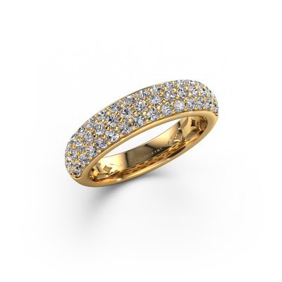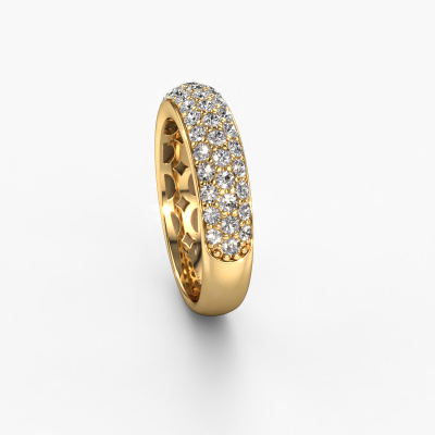 This pave set ring is called Emely 6. This 14 Carat gold ring is set with cz-stones 1.7 mm. The band of this gold ring is set with rows of cz-stones which seem to have no beginning nor end. Our goldsmith carefully selects the gemstones and sets them with the utmost precision. For maximum shine, the cz-stones have to align perfectly. While artfully crafting and polishing the jewellery, light fall is constantly monitored, until the expert goldsmith is satisfied with the result. Designed by you, created especially for you!Customize your own edgyEmely 6 ring, which will then be created by our goldsmiths with great passion. Do you prefer a different option than is shown here in the gold Emely 6 ring? Then our online tools offers various options. Feel free to ask us for help if you are unable to succeed. We are happy to answer your questions!After receiving your order, our goldsmiths will passionately start the creative process of making your ring in our own studio. Because we don't have a big stockpile, these costs will not be passed on to you. Our pricing is proof of that! We offer top quality jewels at lowest price, guaranteed.To make it easier for you, we offer a 30 day return policy. Check our terms and conditions.