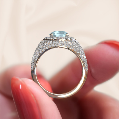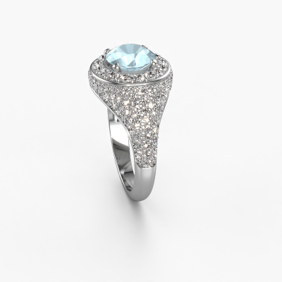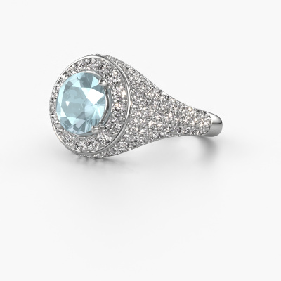 This pave set ring is called Dayle. This platinum ring is set with aquamarine 7 mm. The band of this platinum ring is set with rows of aquamarine which seem to have no beginning nor end. Our goldsmith carefully selects the gemstones and sets them with the utmost precision. For maximum shine, the aquamarine have to align perfectly. While artfully crafting and polishing the jewellery, light fall is constantly monitored, until the expert goldsmith is satisfied with the result. Designed by you, created especially for you!The best part of this elegant ring is that you can customize it to your own liking. Your style, your choice, your ring. On top of that, your exclusive platinum ring will be made by hand with eco-friendly materials! Please feel free to easily customize the ring, using our online tool.Are you on a budget? Please feel free to contact us, so we can go discuss your options. We offer our rings at guaranteed best price, because we make them to order. You won't find such a price anywhere else!To make it easier for you, we offer a 30 day return policy. Check our terms and conditions.