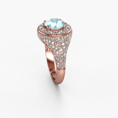 This pave set ring is called Dayle. This 14 Carat rose gold ring is set with aquamarine 7 mm. The band of this rose gold ring is set with rows of aquamarine which seem to have no beginning nor end. Our goldsmith carefully selects the gemstones and sets them with the utmost precision. For maximum shine, the aquamarine have to align perfectly. While artfully crafting and polishing the jewellery, light fall is constantly monitored, until the expert goldsmith is satisfied with the result. Designed by you, created especially for you!The best part of this elegant ring is that you can customize it to your own liking. Your style, your choice, your ring. On top of that, your exclusive rose gold ring will be made by hand with eco-friendly materials! Please feel free to easily customize the ring, using our online tool.Are you on a budget? Please feel free to contact us, so we can go discuss your options. We offer our rings at guaranteed best price, because we make them to order. You won't find such a price anywhere else!To make it easier for you, we offer a 30 day return policy. Check our terms and conditions.
