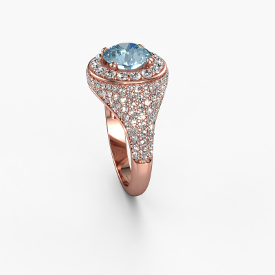 This pave set ring is called Dayle. This 14 Carat rose gold ring is set with blue lab grown diamonds 7 mm. The band of this rose gold ring is set with rows of blue lab grown diamonds which seem to have no beginning nor end. Our goldsmith carefully selects the gemstones and sets them with the utmost precision. For maximum shine, the blue lab grown diamonds have to align perfectly. While artfully crafting and polishing the jewellery, light fall is constantly monitored, until the expert goldsmith is satisfied with the result. Designed by you, created especially for you!The best part of this elegant ring is that you can customize it to your own liking. Your style, your choice, your ring. On top of that, your exclusive rose gold ring will be made by hand with eco-friendly materials! Please feel free to easily customize the ring, using our online tool.Are you on a budget? Please feel free to contact us, so we can go discuss your options. We offer our rings at guaranteed best price, because we make them to order. You won't find such a price anywhere else!To make it easier for you, we offer a 30 day return policy. Check our terms and conditions.