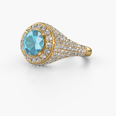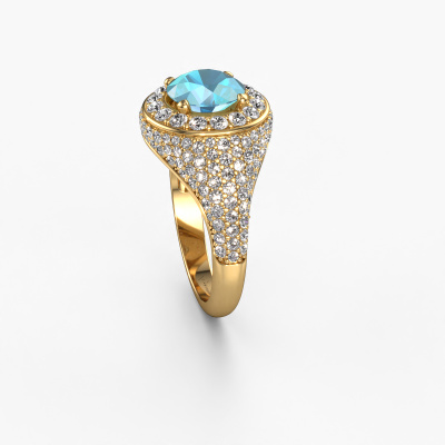 This pave set ring is called Dayle. This 14 Carat gold ring is set with blue topaz 7 mm. The band of this gold ring is set with rows of blue topaz which seem to have no beginning nor end. Our goldsmith carefully selects the gemstones and sets them with the utmost precision. For maximum shine, the blue topaz have to align perfectly. While artfully crafting and polishing the jewellery, light fall is constantly monitored, until the expert goldsmith is satisfied with the result. Designed by you, created especially for you!The best part of this elegant ring is that you can customize it to your own liking. Your style, your choice, your ring. On top of that, your exclusive gold ring will be made by hand with eco-friendly materials! Please feel free to easily customize the ring, using our online tool.Are you on a budget? Please feel free to contact us, so we can go discuss your options. We offer our rings at guaranteed best price, because we make them to order. You won't find such a price anywhere else!To make it easier for you, we offer a 30 day return policy. Check our terms and conditions.