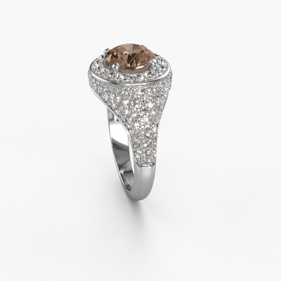 This pave set ring is called Dayle. This 14 Carat white gold ring is set with brown diamonds 2.463 crt. The band of this white gold ring is set with rows of brown diamonds which seem to have no beginning nor end. Our goldsmith carefully selects the gemstones and sets them with the utmost precision. For maximum shine, the brown diamonds have to align perfectly. While artfully crafting and polishing the jewellery, light fall is constantly monitored, until the expert goldsmith is satisfied with the result. Designed by you, created especially for you!The best part of this elegant ring is that you can customize it to your own liking. Your style, your choice, your ring. On top of that, your exclusive white gold ring will be made by hand with eco-friendly materials! Please feel free to easily customize the ring, using our online tool.Are you on a budget? Please feel free to contact us, so we can go discuss your options. We offer our rings at guaranteed best price, because we make them to order. You won't find such a price anywhere else!To make it easier for you, we offer a 30 day return policy. Check our terms and conditions.