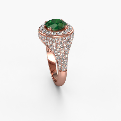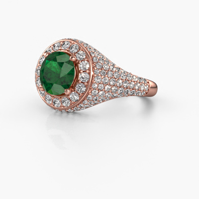 This pave set ring is called Dayle. This 14 Carat rose gold ring is set with emerald 7 mm. The band of this rose gold ring is set with rows of emerald which seem to have no beginning nor end. Our goldsmith carefully selects the gemstones and sets them with the utmost precision. For maximum shine, the emerald have to align perfectly. While artfully crafting and polishing the jewellery, light fall is constantly monitored, until the expert goldsmith is satisfied with the result. Designed by you, created especially for you!The best part of this elegant ring is that you can customize it to your own liking. Your style, your choice, your ring. On top of that, your exclusive rose gold ring will be made by hand with eco-friendly materials! Please feel free to easily customize the ring, using our online tool.Are you on a budget? Please feel free to contact us, so we can go discuss your options. We offer our rings at guaranteed best price, because we make them to order. You won't find such a price anywhere else!To make it easier for you, we offer a 30 day return policy. Check our terms and conditions.