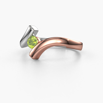 This ring called Amy is made of 14 Carat rose gold and is set with peridot. Are you in the market for a unique rose gold ring with a modern twist? Then this ring might suit you. Simply customize to your or her liking. It suits the contemporary modern woman. This elegant ring is set with beautiful peridot. This has been carefully selected. Because your ring must be adorned with nothing but the most stunning gemstone. Our expert goldsmith will create your ring in our own studio, where the peridot will be set with great care. The ring will then be polished to perfection to create a stunning ring. By using a combination of the latest modern techniques, combined with ancient crafting, we can make all our rings in our own studio. Each jewel is made to order. This is advantageous because we can offer you a price you won't find anywhere else.