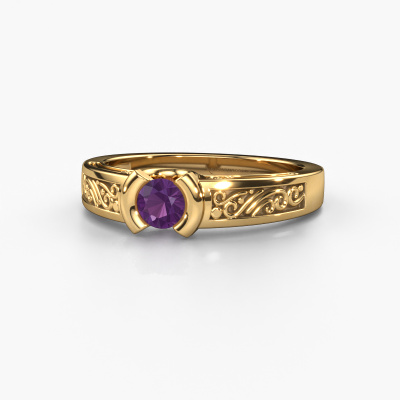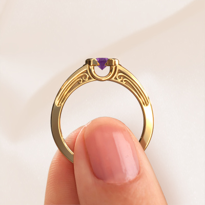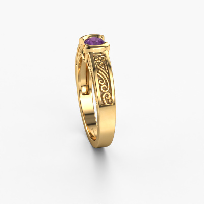 Do you have a vintage fetish? Then this gold Elena ring suits you perfectly. It's a contemporary design, based on vintage designs. A slightly romantic, extraordinary design! Even more when you customize to your liking. This elegant ring is set with exquisite amethysten. As you can see, you can simply choose a gemstone that matches your style. Each gemstone is carefully selected by our merchants whom are spread throughout the world. Nothing but the best gems for our expert goldsmith! After all, it is his crowning glory!As soon as you finished designing your Elena ring with our online tool, our goldsmiths will start their creative process of making your ring. This will be done with passion and care, according ancient crafting. On top of that, our jewels are made of eco-friendly materials. Simply customize online with our online tool, if you want any changes made. If you want specific changes made to your Elena ring, that are unavailable in our online tool, please feel free to contact our expert designers.Are you on a budget? Please feel free to contact us, so we can go discuss your options. We offer our rings at guaranteed best price, because we make them to order. You won't find such a price anywhere else!To make it easier for you, we offer a 30 day return policy. Check our terms and conditions.