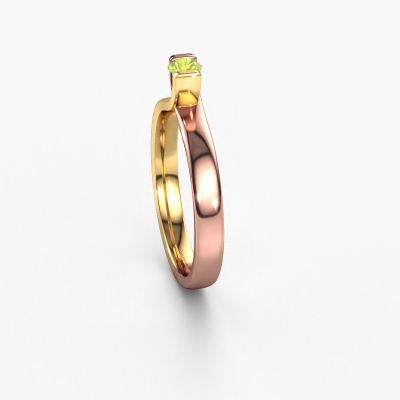 This ring called Noor is made of 14 Carat rose gold and is set with peridot. Are you in the market for a unique rose gold ring with a modern twist? Then this ring might suit you. Simply customize to your or her liking. It suits the contemporary modern woman. This elegant ring is set with beautiful peridot. This has been carefully selected. Because your ring must be adorned with nothing but the most stunning gemstone. Our expert goldsmith will create your ring in our own studio, where the peridot will be set with great care. The ring will then be polished to perfection to create a stunning ring. Are you on a budget? Please feel free to contact us, so we can go discuss your options. We offer our rings at guaranteed best price, because we make them to order. You won't find such a price anywhere else!Our team of talented, passionate designers add new ring designs to our online collection daily. Our objective in doing so, is to be able to offer you a wide variety of jewels. Please feel free to request a quote if you have specific wishes for your ring. We guarantee to make you an offer you can't refuse.To make it easier for you, we offer a 30 day return policy. Check our terms and conditions.