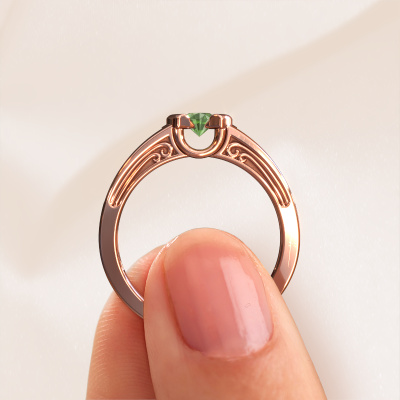 Do you have a vintage fetish? Then this rose gold Elena ring suits you perfectly. It's a contemporary design, based on vintage designs. A slightly romantic, extraordinary design! Even more when you customize to your liking. This elegant ring is set with exquisite tourmaline green. As you can see, you can simply choose a gemstone that matches your style. Each gemstone is carefully selected by our merchants whom are spread throughout the world. Nothing but the best gems for our expert goldsmith! After all, it is his crowning glory!As soon as you finished designing your Elena ring with our online tool, our goldsmiths will start their creative process of making your ring. This will be done with passion and care, according ancient crafting. On top of that, our jewels are made of eco-friendly materials. Simply customize online with our online tool, if you want any changes made. If you want specific changes made to your Elena ring, that are unavailable in our online tool, please feel free to contact our expert designers.Are you on a budget? Please feel free to contact us, so we can go discuss your options. We offer our rings at guaranteed best price, because we make them to order. You won't find such a price anywhere else!To make it easier for you, we offer a 30 day return policy. Check our terms and conditions.