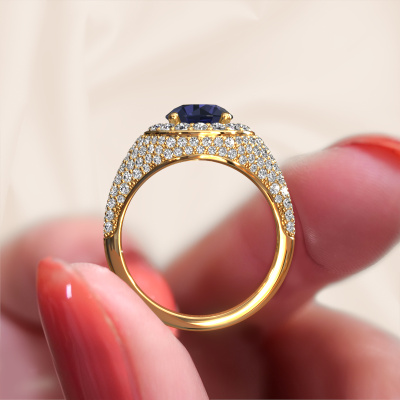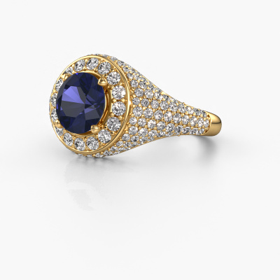 This pave set ring is called Dayle. This 14 Carat gold ring is set with sapphire 7 mm. The band of this gold ring is set with rows of sapphire which seem to have no beginning nor end. Our goldsmith carefully selects the gemstones and sets them with the utmost precision. For maximum shine, the sapphire have to align perfectly. While artfully crafting and polishing the jewellery, light fall is constantly monitored, until the expert goldsmith is satisfied with the result. Designed by you, created especially for you!The best part of this elegant ring is that you can customize it to your own liking. Your style, your choice, your ring. On top of that, your exclusive gold ring will be made by hand with eco-friendly materials! Please feel free to easily customize the ring, using our online tool.Are you on a budget? Please feel free to contact us, so we can go discuss your options. We offer our rings at guaranteed best price, because we make them to order. You won't find such a price anywhere else!To make it easier for you, we offer a 30 day return policy. Check our terms and conditions.