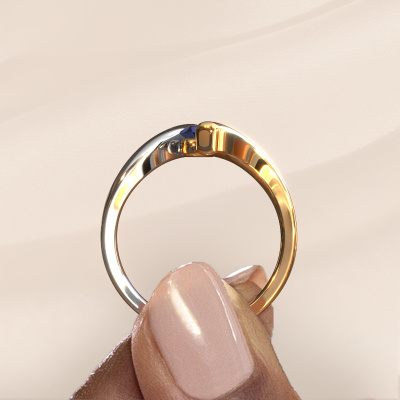 This ring called Amy is made of 14 Carat gold and is set with sapphire. Are you in the market for a unique gold ring with a modern twist? Then this ring might suit you. Simply customize to your or her liking. It suits the contemporary modern woman. This elegant ring is set with beautiful sapphire. This has been carefully selected. Because your ring must be adorned with nothing but the most stunning gemstone. Our expert goldsmith will create your ring in our own studio, where the sapphire will be set with great care. The ring will then be polished to perfection to create a stunning ring. By using a combination of the latest modern techniques, combined with ancient crafting, we can make all our rings in our own studio. Each jewel is made to order. This is advantageous because we can offer you a price you won't find anywhere else.