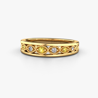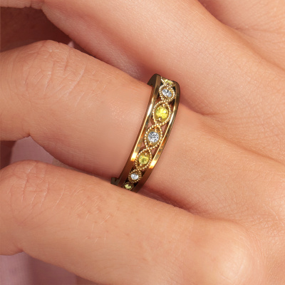 Do you have a vintage fetish? Then this gold Laine stackable ring suits you perfectly. It's a contemporary design, based on vintage designs. A slightly romantic, extraordinary design! Even more when you customize to your liking. This elegant stackable ring is set with exquisite yellow sapphire. As you can see, you can simply choose a gemstone that matches your style. Each gemstone is carefully selected by our merchants whom are spread throughout the world. Nothing but the best gems for our expert goldsmith! After all, it is his crowning glory!A customized vintage stackable ring is the perfect gift! New exquisite designs are added daily by our team of passionate goldsmiths. And each design can be customized. Simply customize the precious metals and the colour of gemstones which will be used, for example. This makes your design of the vintage Laine stackable ring truly unique!Because we design and deliver our own rings, we can offer you a ring at a price you won't find anywhere else. A ring is made to order, which helps prevent excess supplies, so we can make you a great price offer. We understand it feels risky, buying your ring online, but we will gladly assist in the designing process, taking your budget into consideration.To make it easier for you, we offer a 30 day return policy. Check our terms and conditions.