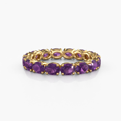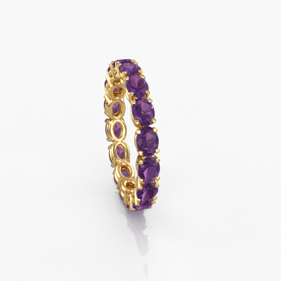 This is our Vivienne OVL 4x3 ring. This specific type is called an eternity ring and it is set with a continuous line of identically cut gemstones. The ring is made in 14 Carat gold and is set with small amethysten, 4x3 mm. This gold Eternity ring is a perfectly beautiful and meaningful way to give your proposal that special touch. The magnificent evenly shaped amethysten are pave set around the ring. The identical amethysten are carefully selected to give the ring a maximum effect. Do keep in mind we use natural resources so small differences between stones are common. The special effect is enhanced due to precise positioning of the amethysten. This requires the utmost precision and a skilful hand but for our skilled artisans this is what excites them. The result is a ring with a row of amethysten which seem to have no beginning nor end. The perfect symbol of your love for her! Isn't she a beauty?Because we design and deliver our own rings, we can offer you a ring at a price you won't find anywhere else. A ring is made to order, which helps prevent excess supplies, so we can make you a great price offer. We understand it feels risky, buying your ring online, but we will gladly assist in the designing process, taking your budget into consideration.Our team of talented, passionate designers add new ring designs to our online collection daily. Our objective in doing so, is to be able to offer you a wide variety of jewels. Please feel free to request a quote if you have specific wishes for your ring. We guarantee to make you an offer you can't refuse.To make it easier for you, we offer a 30 day return policy. Check our terms and conditions.