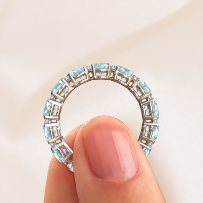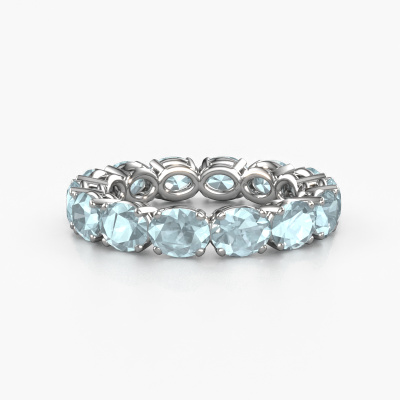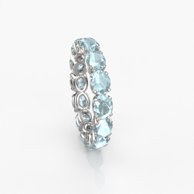 This is our Vivienne OVL 5x4 ring. This specific type is called an eternity ring and it is set with a continuous line of identically cut gemstones. The ring is made in 14 Carat white gold and is set with small aquamarine, 5x4 mm. This white gold Eternity ring is a perfectly beautiful and meaningful way to give your proposal that special touch. The magnificent evenly shaped aquamarine are pave set around the ring. The identical aquamarine are carefully selected to give the ring a maximum effect. Do keep in mind we use natural resources so small differences between stones are common. The special effect is enhanced due to precise positioning of the aquamarine. This requires the utmost precision and a skilful hand but for our skilled artisans this is what excites them. The result is a ring with a row of aquamarine which seem to have no beginning nor end. The perfect symbol of your love for her! Isn't she a beauty?By using our modern techniques, we can design and customize the finest quality jewels with the utmost care for you. Our rings are always priced 30 percent lower than other jewellers. We make rings to order, so we don't have to maintain a large stock. If you have a certain budget, we are more than happy to advice you accordingly.New jewellery designs are added to our online collection daily. Our team of passionate designers strive to create extraordinary and diverse designs. Have you seen a ring you like? Please feel free to contact us. Based on a good price/ quality ratio, we will make you an offer you can't refuse!To make it easier for you, we offer a 30 day return policy. Check our terms and conditions.