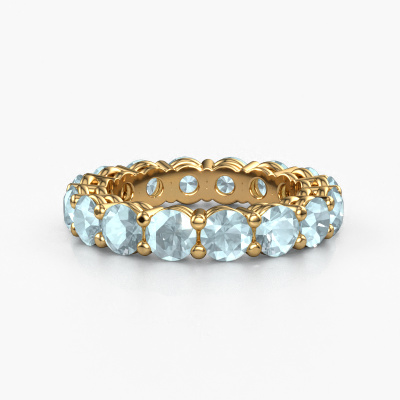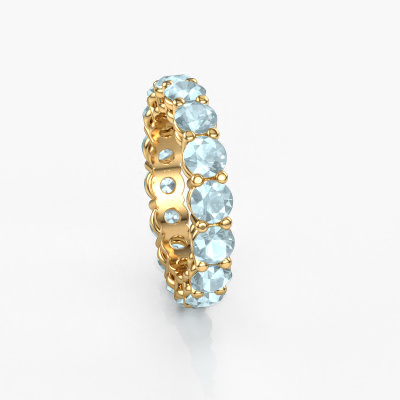 This is our Michelle full 4.2 ring. This specific type is called an eternity ring and it is set with a continuous line of identically cut gemstones. The ring is made in 14 Carat gold and is set with small aquamarine, 4.2 mm. This gold Eternity ring is a perfectly beautiful and meaningful way to give your proposal that special touch. The magnificent evenly shaped aquamarine are pave set around the ring. The identical aquamarine are carefully selected to give the ring a maximum effect. Do keep in mind we use natural resources so small differences between stones are common. The special effect is enhanced due to precise positioning of the aquamarine. This requires the utmost precision and a skilful hand but for our skilled artisans this is what excites them. The result is a stackable ring with a row of aquamarine which seem to have no beginning nor end. The perfect symbol of your love for her! Isn't she a beauty?After receiving your order, our goldsmiths will start the creative process of making your Michelle full 4.2 ring. We don't keep stock. This is advantageous because these costs will not be passed on to you. Therefore, we can offer jewellery at exceptionally low prices.New jewellery designs are added to our online collection daily. Our team of passionate designers strive to create extraordinary and diverse designs. Have you seen a ring you like? Please feel free to contact us. Based on a good price/ quality ratio, we will make you an offer you can't refuse!To make it easier for you, we offer a 30 day return policy. Check our terms and conditions.