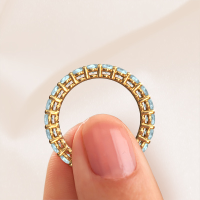This Heddy OVL 3x5 stackable ring in 14 Carat gold is set with aquamarine. This gold stacked Heddy OVL 3x5 ring is the perfect addition to your ring collection! As the name suggests, it is a ring which can be combined on one finger with another ring. It gives you the opportunity to create your own style. A stacked ring usually represents a certain memory of someone special or a memorable moment. It is common to combine a stacked ring, representing an anniversary, with a wedding ring. But this eternity ring, combined with your other rings, also makes a classy fashion item. Customize your own eternityHeddy OVL 3x5 stackable ring, which will then be created by our goldsmiths with great passion. Do you prefer a different option than is shown here in the gold Heddy OVL 3x5 stackable ring? Then our online tools offers various options. Feel free to ask us for help if you are unable to succeed. We are happy to answer your questions!Because we design and deliver our own rings, we can offer you a ring at a price you won't find anywhere else. A ring is made to order, which helps prevent excess supplies, so we can make you a great price offer. We understand it feels risky, buying your ring online, but we will gladly assist in the designing process, taking your budget into consideration.To make it easier for you, we offer a 30 day return policy. Check our terms and conditions.