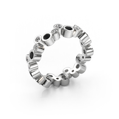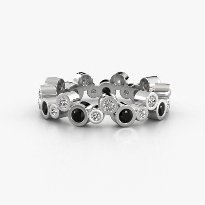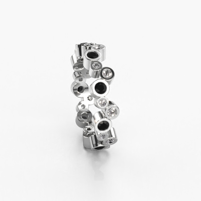 This is our Tessa ring. This specific type is called an eternity ring and it is set with a continuous line of identically cut gemstones. The ring is made in 14 Carat white gold and is set with small black diamonds, 0.072 crt. This white gold Eternity ring is a perfectly beautiful and meaningful way to give your proposal that special touch. The magnificent evenly shaped black diamonds are pave set around the ring. The identical black diamonds are carefully selected to give the ring a maximum effect. Do keep in mind we use natural resources so small differences between stones are common. The special effect is enhanced due to precise positioning of the black diamonds. This requires the utmost precision and a skilful hand but for our skilled artisans this is what excites them. The result is a ring with a row of black diamonds which seem to have no beginning nor end. The perfect symbol of your love for her! Isn't she a beauty?By using our modern techniques, we can design and customize the finest quality jewels with the utmost care for you. Our rings are always priced 30 percent lower than other jewellers. We make rings to order, so we don't have to maintain a large stock. If you have a certain budget, we are more than happy to advice you accordingly.Our talented designers add new designs to our online collection daily. Together they create a diverse collection of the finest jewellery. If you prefer to make a ring according your own design, please feel free to request a quote. We will make you an amazing offer, based on quality and price.To make it easier for you, we offer a 30 day return policy. Check our terms and conditions.