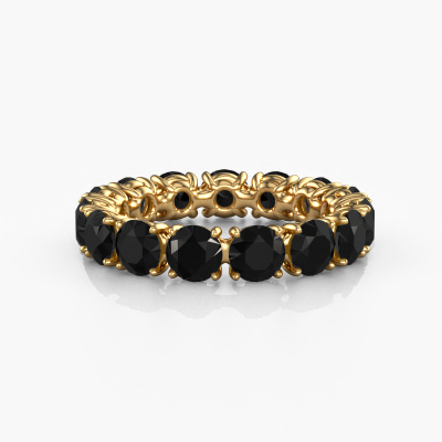 This is our Vivienne 4.2 ring. This specific type is called an eternity ring and it is set with a continuous line of identically cut gemstones. The ring is made in 14 Carat gold and is set with small black diamonds, 0.36 crt. This gold Eternity ring is a perfectly beautiful and meaningful way to give your proposal that special touch. The magnificent evenly shaped black diamonds are pave set around the ring. The identical black diamonds are carefully selected to give the ring a maximum effect. Do keep in mind we use natural resources so small differences between stones are common. The special effect is enhanced due to precise positioning of the black diamonds. This requires the utmost precision and a skilful hand but for our skilled artisans this is what excites them. The result is a ring with a row of black diamonds which seem to have no beginning nor end. The perfect symbol of your love for her! Isn't she a beauty?By using a combination of the latest modern techniques, combined with ancient crafting, we can make all our rings in our own studio. Each jewel is made to order. This is advantageous because we can offer you a price you won't find anywhere else.
