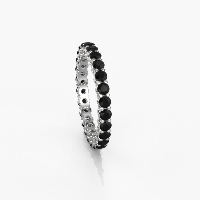 This is our Michelle full 2.4 ring. This specific type is called an eternity ring and it is set with a continuous line of identically cut gemstones. The ring is made in platinum and is set with small black diamonds, 0.066 crt. This platinum Eternity ring is a perfectly beautiful and meaningful way to give your proposal that special touch. The magnificent evenly shaped black diamonds are pave set around the ring. The identical black diamonds are carefully selected to give the ring a maximum effect. Do keep in mind we use natural resources so small differences between stones are common. The special effect is enhanced due to precise positioning of the black diamonds. This requires the utmost precision and a skilful hand but for our skilled artisans this is what excites them. The result is a stackable ring with a row of black diamonds which seem to have no beginning nor end. The perfect symbol of your love for her! Isn't she a beauty?After receiving your order, our goldsmiths will start the creative process of making your Michelle full 2.4 ring. We don't keep stock. This is advantageous because these costs will not be passed on to you. Therefore, we can offer jewellery at exceptionally low prices.