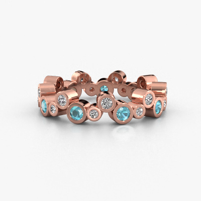 This is our Tessa ring. This specific type is called an eternity ring and it is set with a continuous line of identically cut gemstones. The ring is made in 14 Carat rose gold and is set with small blue topaz, 2.5 mm. This rose gold Eternity ring is a perfectly beautiful and meaningful way to give your proposal that special touch. The magnificent evenly shaped blue topaz are pave set around the ring. The identical blue topaz are carefully selected to give the ring a maximum effect. Do keep in mind we use natural resources so small differences between stones are common. The special effect is enhanced due to precise positioning of the blue topaz. This requires the utmost precision and a skilful hand but for our skilled artisans this is what excites them. The result is a ring with a row of blue topaz which seem to have no beginning nor end. The perfect symbol of your love for her! Isn't she a beauty?By using our modern techniques, we can design and customize the finest quality jewels with the utmost care for you. Our rings are always priced 30 percent lower than other jewellers. We make rings to order, so we don't have to maintain a large stock. If you have a certain budget, we are more than happy to advice you accordingly.Our talented designers add new designs to our online collection daily. Together they create a diverse collection of the finest jewellery. If you prefer to make a ring according your own design, please feel free to request a quote. We will make you an amazing offer, based on quality and price.To make it easier for you, we offer a 30 day return policy. Check our terms and conditions.
