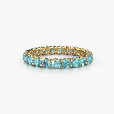 This is our Heddy rnd 2.7 ring. This specific type is called an eternity ring and it is set with a continuous line of identically cut gemstones. The ring is made in 14 Carat gold and is set with small blue topaz, 2.7 mm. This gold Eternity ring is a perfectly beautiful and meaningful way to give your proposal that special touch. The magnificent evenly shaped blue topaz are pave set around the ring. The identical blue topaz are carefully selected to give the ring a maximum effect. Do keep in mind we use natural resources so small differences between stones are common. The special effect is enhanced due to precise positioning of the blue topaz. This requires the utmost precision and a skilful hand but for our skilled artisans this is what excites them. The result is a stackable ring with a row of blue topaz which seem to have no beginning nor end. The perfect symbol of your love for her! Isn't she a beauty?Because we design and deliver our own rings, we can offer you a ring at a price you won't find anywhere else. A ring is made to order, which helps prevent excess supplies, so we can make you a great price offer. We understand it feels risky, buying your ring online, but we will gladly assist in the designing process, taking your budget into consideration.Our team of talented, passionate designers add new ring designs to our online collection daily. Our objective in doing so, is to be able to offer you a wide variety of jewels. Please feel free to request a quote if you have specific wishes for your ring. We guarantee to make you an offer you can't refuse.To make it easier for you, we offer a 30 day return policy. Check our terms and conditions.